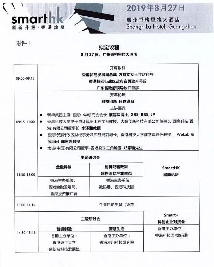 附件:1.“创新升级 香港论坛”议程(暂定)