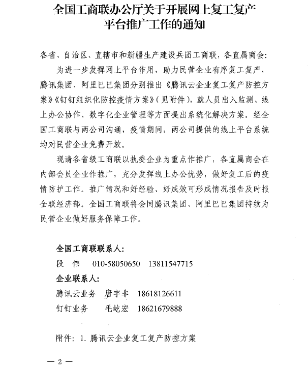 附件下载:附件1:腾讯云企业复工复产防控方案 附件下载:附件2:钉钉组织化防控疫情方案