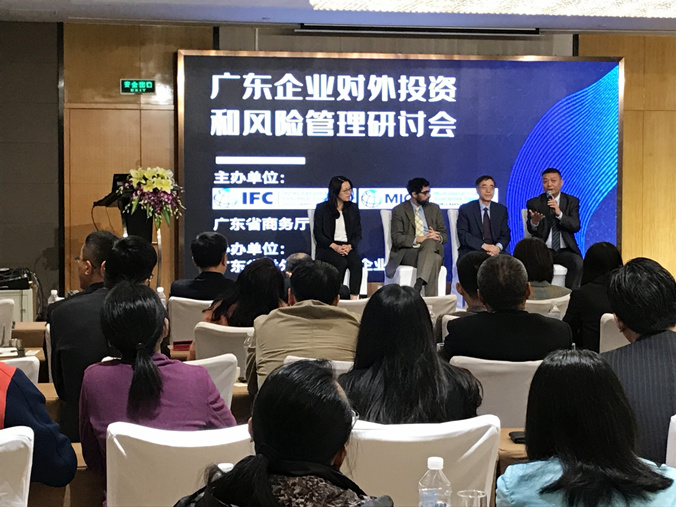 来源:广东省民营经济国际合作商会12月11日上午,由广东省商务厅、世界银行多边投资担保机构(MIGA)和国际金融公司(IFC)共同举办的广东企业对外投资和风险管理研讨会在广州举行。省商务厅领导、世界银行多边投资担保机构和国际金融公司相关负责人、民营企业和商协会代表近80人参加会议。我会碧桂园控股有限公司、广东智洋律师事务所、广东大浪水上乐园设备有限公司、天合烟草国际香港有限公司、广州天丽交通工程有限公司五家企业代表及秘书处同志参加了研讨会。