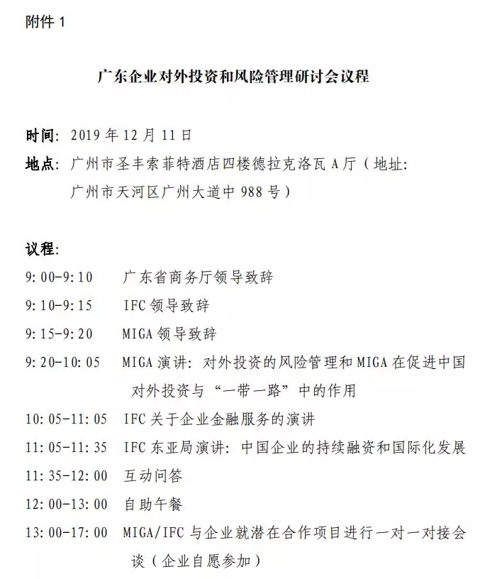 广东省商务厅关于联合世界银行多边投资担保机构和国际金融公司共同举办广东企业对外投资和风险管理研讨会的通知