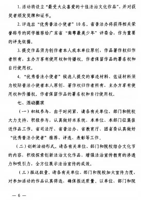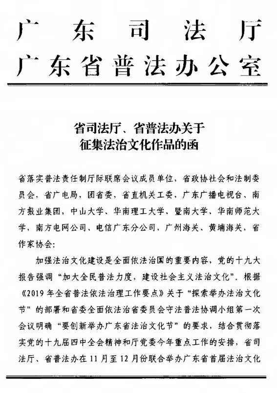 省司法厅、省普法办将于11月至12月联合举办我省首届法治文化节,为做好全省工商联系统法治文化作品征集工作,现将《省司法厅、省普法办关于征集法治文化作品的函》(见附件)转发你们,请各单位按活动主题、内容要求,并结合实际,及时做好组织发动,广泛征集优秀作品。请于11月18日前,按附件要求填报《作品征集报名表》,并同作品材料报送我会,我会将统一汇总上报省普法办。