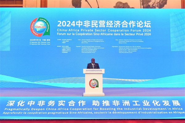 9月7日,由全国工商联、广东省人民政府、中国银行共同主办的2024中非民营经济合作论坛在广东省深圳市召开,来自国内外的250余位嘉宾围绕“深化中非务实合作,助推非洲工业化发展”主题,共商合作,共话未来。加纳共和国总统阿库福-阿多,全国政协副主席、全国工商联主席高云龙,广东省政协主席林克庆,中国银行董事长葛海蛟出席论坛并致辞。论坛由广东省委常委、省政府副省长王曦主持。商会荣誉会长张华荣、监事长龚武、副会长霍江涛、理事邱文艳、会员练火添出席本次活动。