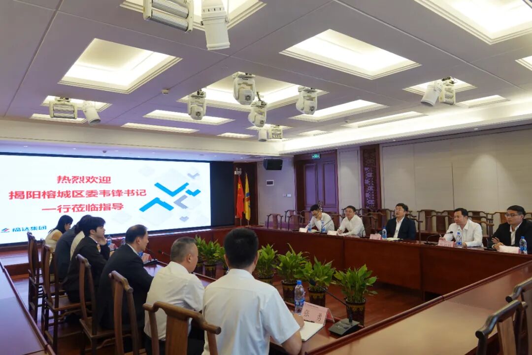 10月24日下午,揭阳市榕城区委书记韦锋率队到商会及会长单位—福达集团考察指导工作,广东省工商联副主席、广东省民营经济国际合作商会会长、福达集团董事局主席王福亮接待了考察组一行。榕城区委副书记陈颖聪,榕城区委常委、常务副区长黄春明,榕城区委区政府办公室主任黄育迥,榕城区发展改革局局长王浩彬,商会秘书长杨采熙,副秘书长王尚,以及福达集团相关业务负责人等参加座谈。