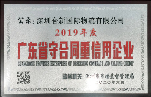 近期,广东省市场监督管理局公布了2019年度“广东省守合同重信用企业”名单,合新科技及其子公司合新物流、一合食品凭借自身良好的信用体系建设及诚信守约形象,荣获“广东省守合同重信用企业”称号。其中,合新科技更是两年蝉联此殊荣。