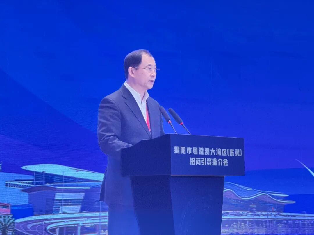 5日下午,揭阳市粤港澳大湾区(东莞)招商引资推介会在东莞市成功举办,向粤港澳大湾区企业展现揭阳向上向好的发展态势、蓬勃兴旺的产业基础、热火朝天的建设场面和持续优化的营商环境。揭阳市委书记曾风保出席会议并讲话,市委副书记王绍乐主持会议。广东省政协常委、广东省工商联副主席、广东省民营经济国际合作商会会长、福达集团董事局主席王福亮出席大会并致辞。会议举行项目签约仪式。经过前期对接洽谈,共有36个项目达成具体合作,涵盖先进制造、新能源、新材料、现代农业、现代服务业等领域,总投资额达431亿元。当天现场签约项目21个;揭阳市人民政府与华润(集团)有限公司签订合作备忘录。曾风保指出,今天的揭阳,口碑日佳、充满生机,古今交汇、山海相拥,产业兴旺、前景广阔,交通畅达、宜居宜业,干群同心、和和美美。揭阳的今天,是广大企业家深耕实干、各位父老乡亲鼎力支持的结果;揭阳的未来,更离不开每一位建设者的接续赋能、踊跃参与、并肩奋斗。诚盼大家积极参与揭阳产业强市建设,在“一化一海五优特”产业集群的广阔舞台上合作共赢;积极投身揭阳“百千万工程”,在强县促镇带村的火热场景中深耕实干;积极助力城市品质提升,参与到家乡城市更新、功能完善、生态优化的生动实践中。希望广大企业家走进揭阳、认识揭阳、选择揭阳,与我们共享发展机遇、共谋兴业愿景。揭阳市委、市政府将坚持真心实意优服务、真金白银降成本、用心用情帮企业,尽最大诚意、最大努力为大家提供最优服务。会上,揭阳市委常委、常务副市长蔡淡群介绍揭阳市经济社会发展情况和投资环境。各县(市、区)和经济功能区开展招商宣传。中国银行揭阳分行行长详细介绍了投融资等优惠政策。王福亮会长等9位企业家代表深情讲述在揭阳享受到的贴心服务、感受到的发展前景。此次招商推介会是莞揭深入贯彻落实省委“百千万工程” 和区域协调发展战略部署的具体实践,是两地携手推动产业有序转移、共促高质量发展的重要举措。在莞揭两地高效协同下,推介会聚焦揭阳“一化一海五优特”产业集群,受邀参会企业70%以上来自粤港澳大湾区,且与揭阳市产业链关联度高,高度认可揭阳未来发展潜力。省政府办公厅二级巡视员林汉达,省工业和信息化厅二级巡视员谌志群;揭阳市领导姚丽璇、梁柱华、李鹏宇、魏洁林;东莞市副市长李辉;粤港澳大湾区等地优秀企业家、商协会代表,助力“百千万工程”重点建筑业央企有关负责人;省直机关组团纵向帮扶单位、东莞市对口帮扶有关单位有关负责同志等参加会议。